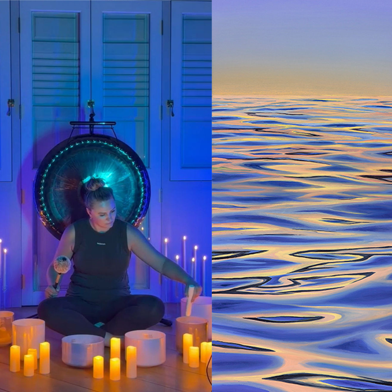 Paint the reflection of ocean ripples & enjoy a sound bath session. Taught at Hello Art School.